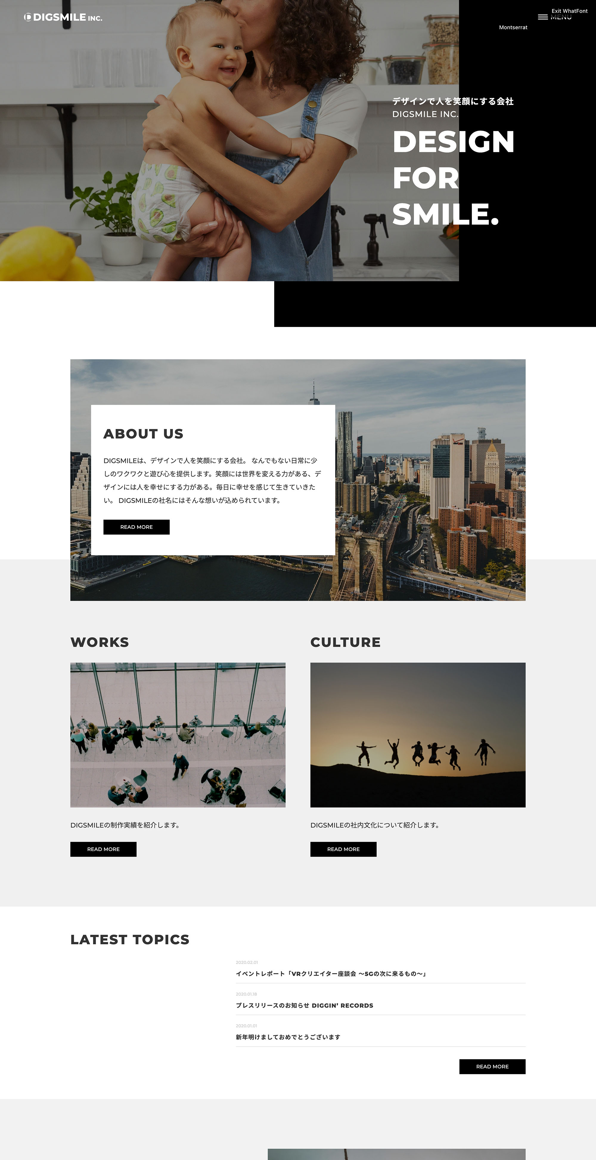 スマートフォン、タブレット、PCそれぞれにブレイクポイントを設定しモバイルファーストでレスポンシブ対応でコーディングしています。jqueryにてタイトルとメニューがファーストビューを超えスクロールすると色が変わるように設定。AboutUs、Contactページも作成してあります。